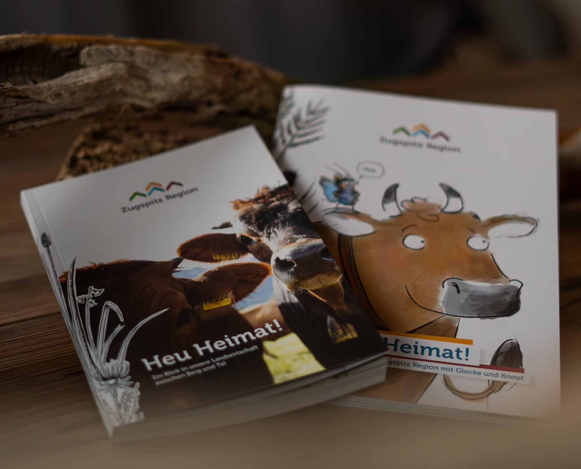 Wir freuen uns, in Zusammenarbeit mit der Zugspitzregion die neue Broschüre „Heu Heimat“ vorzustellen. Die Broschüre ist in zwei Varianten erhältlich: als Rückstichheftung (Heu Heimat „Kids“)und als PUR-Klebebindung (Heu Heimat)